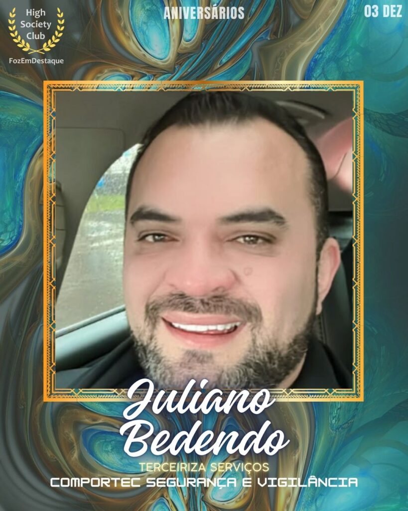 Empresário – Terceiriza Serviços e Comportec Segurança e Vigilância Juliano Bedendo é um empresário que atua no segmento de serviços, sendo uma liderança em empresas como a Terceiriza Serviços e a Comportec Segurança e Vigilância. Ele é reconhecido por sua gestão focada em soluções eficazes para segurança e prestação de serviços terceirizados na região. É membro do HighSocietyClub FozEmDestaque.