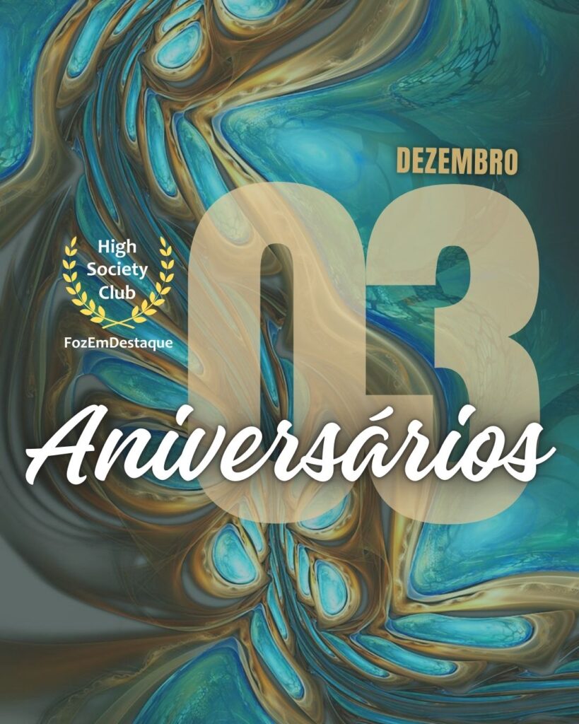 O HighSocietyClub FozEmDestaque envia os mais sinceros votos de saúde, felicidade e muito sucesso a todos os aniversariantes deste 3 de dezembro. Certamente, a reunião de talentos tão diversos em uma única data reforça a riqueza e a pluralidade da nossa cidade.