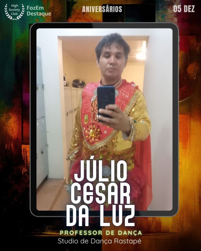 Júlio Cesar da Luz O mestre Júlio Cesar da Luz é um renomado Professor de Dança e o coração do Studio de Dança Rastapé. Ele é responsável por cultivar a arte da dança de salão e popular em Foz do Iguaçu. Seu talento e paixão pela dança inspiram alunos de todas as idades, promovendo cultura, movimento e alegria.