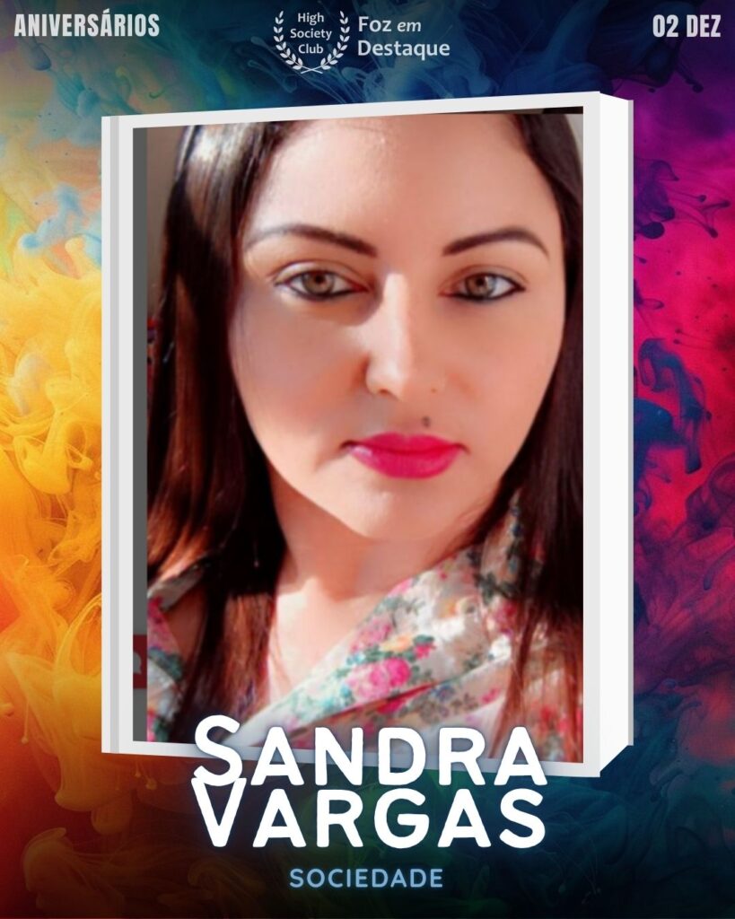 Sandra Vargas é uma integrante valorizada da Sociedade de Foz do Iguaçu e do HighSocietyClub. Sua personalidade e presença social marcam os círculos em que transita. Sandra é reconhecida por sua atuação e engajamento social. Neste 2 de dezembro, ela recebe os votos de muita paz, saúde, prosperidade e um novo ciclo cheio de felicidade de toda a equipe do FozEmDestaque e de seus amigos e familiares.