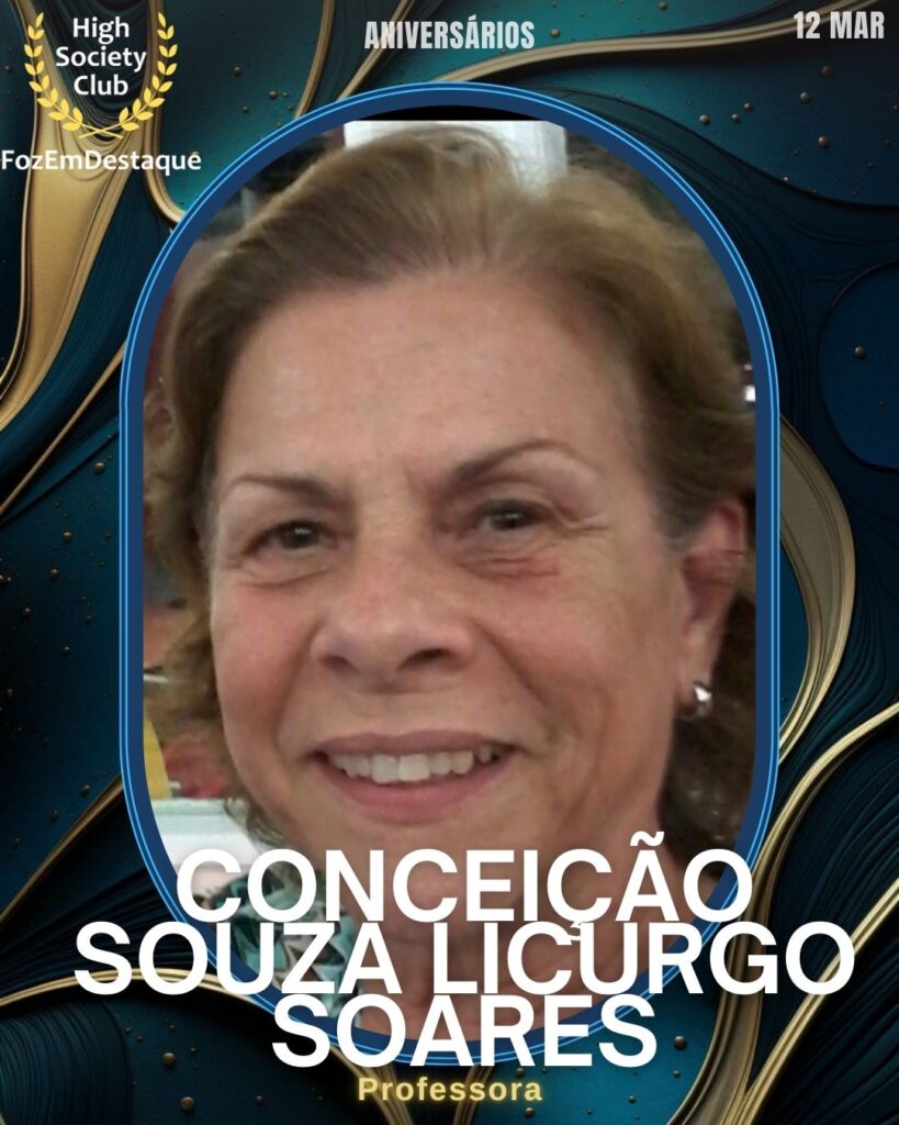 Dedicada à nobre missão de educar, a Professora Conceição Souza Licurgo Soares festeja hoje sua nova idade. Com uma vida dedicada ao ensino e à formação de novas gerações, ela é uma figura de imenso respeito e carinho em nossa comunidade acadêmica e social. Membro do HighSocietyClub.