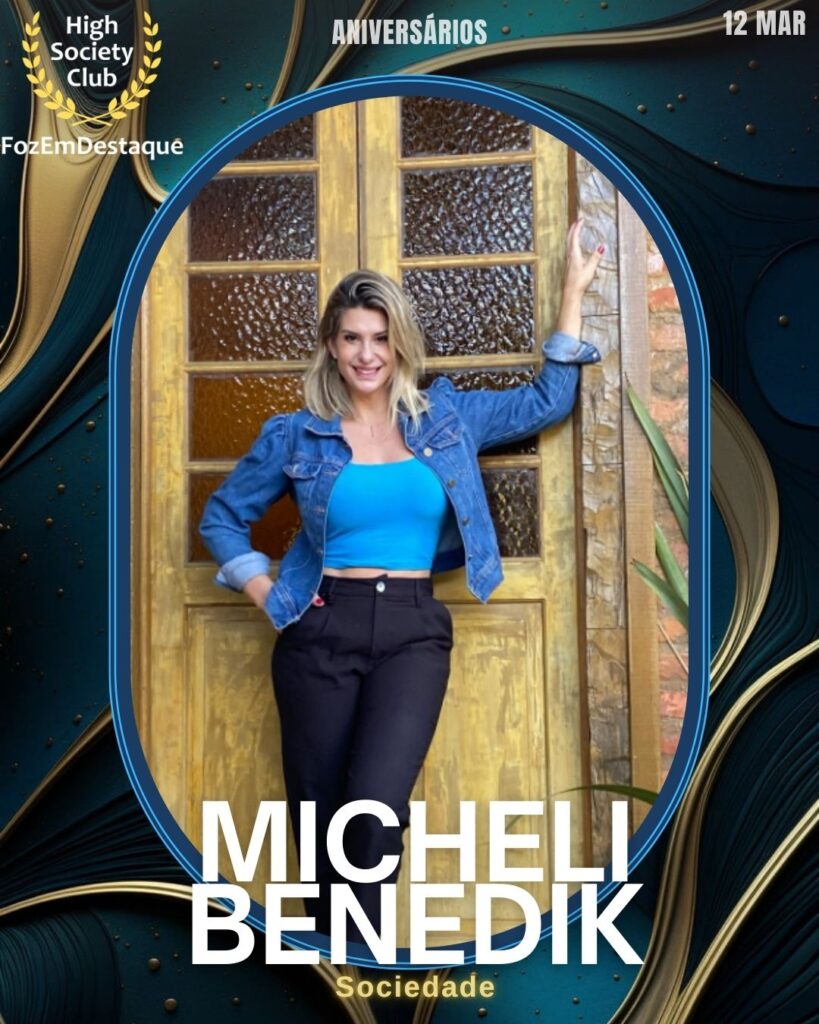 Personalidade vibrante e sempre ligada às boas causas e encontros sociais, Micheli Benedik comemora mais um ciclo hoje. Seu carisma e presença marcante fazem dela uma figura indispensável no convívio social de Foz do Iguaçu, celebrando a vida com muita alegria. Membro do HighSocietyClub.