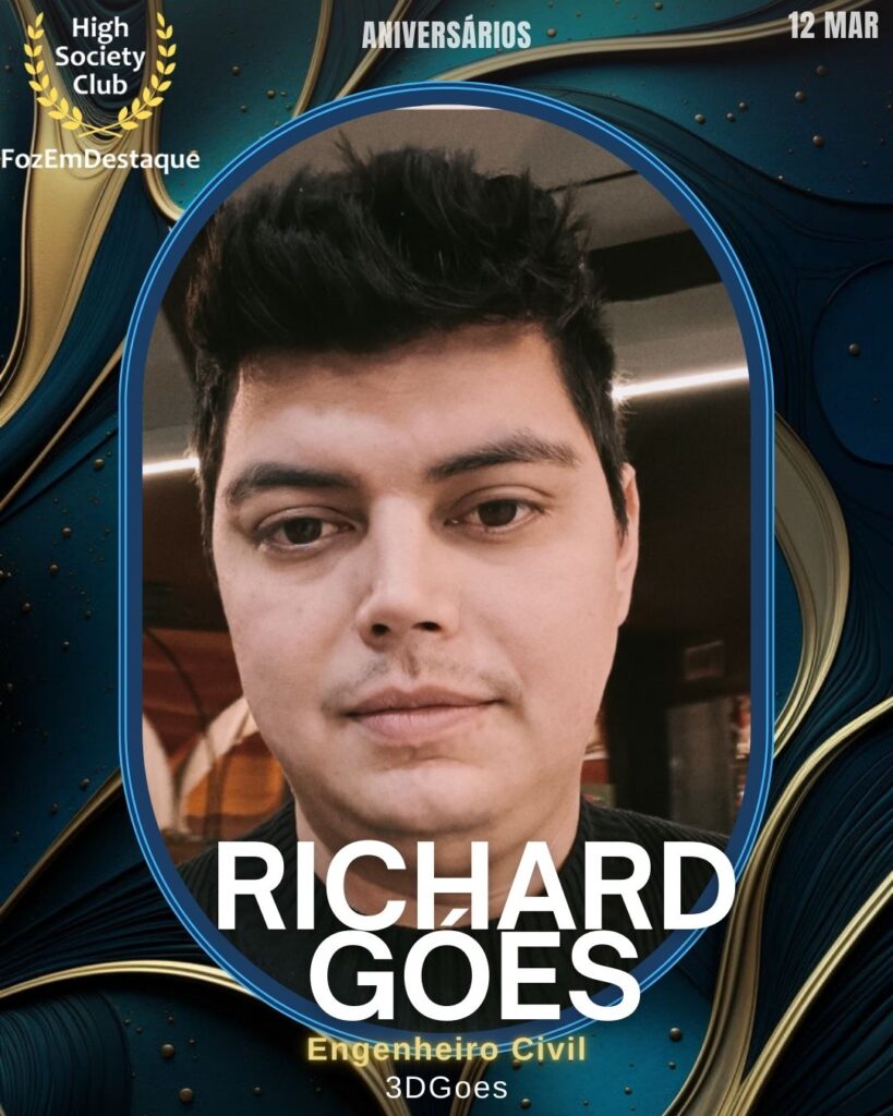 Engenheiro Civil de destaque com foco em inovação através da 3DGoes, Richard Góes celebra hoje seu aniversário. Sua atuação técnica contribui para o desenvolvimento urbano e estrutural da região, unindo engenharia de precisão com visão de futuro. Membro do HighSocietyClub.