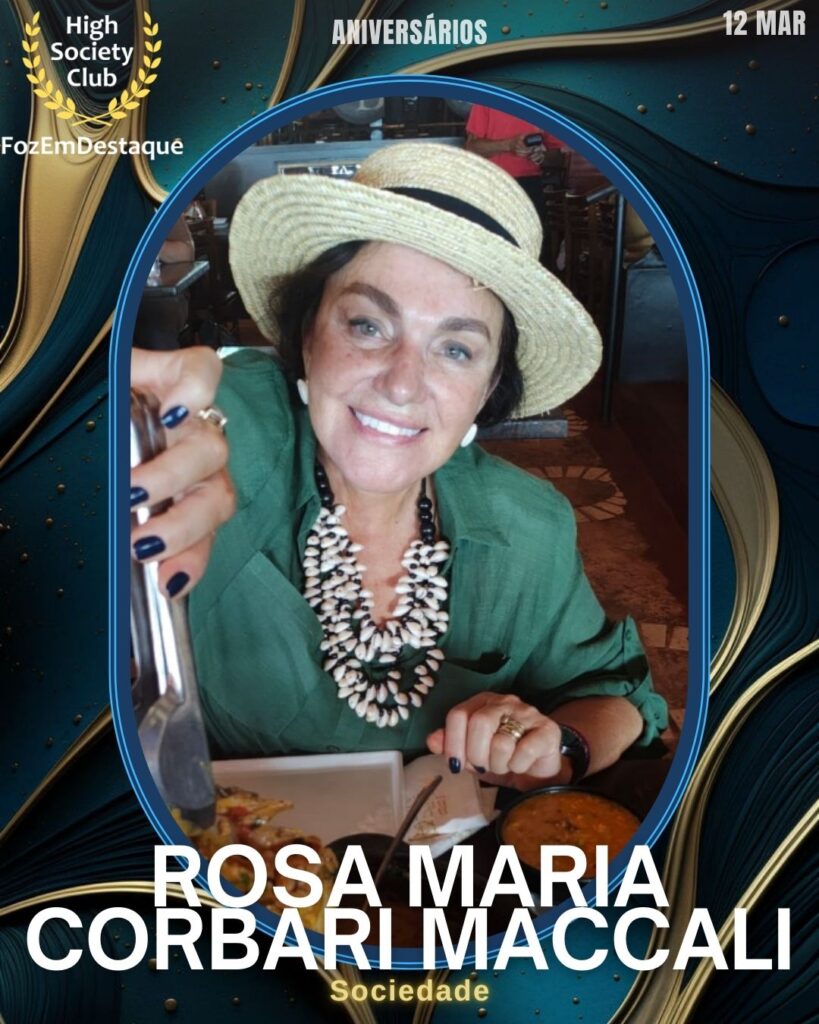 Celebrando a vida com sofisticação, Rosa Maria Corbari Maccali é destaque na coluna de hoje. Sua presença em eventos sociais é sempre pautada pela classe e discrição, sendo uma personalidade muito estimada em todos os círculos em que transita. Membro do HighSocietyClub.
