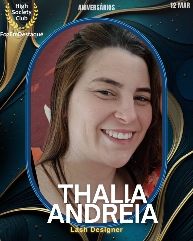 Referência em estética e beleza, Thalia Andréia comemora seu aniversário hoje. Como Lash Designer, ela eleva a autoestima de suas clientes com técnica e arte, consolidando-se como uma profissional requisitada no setor de beleza em Foz. Membro do HighSocietyClub.