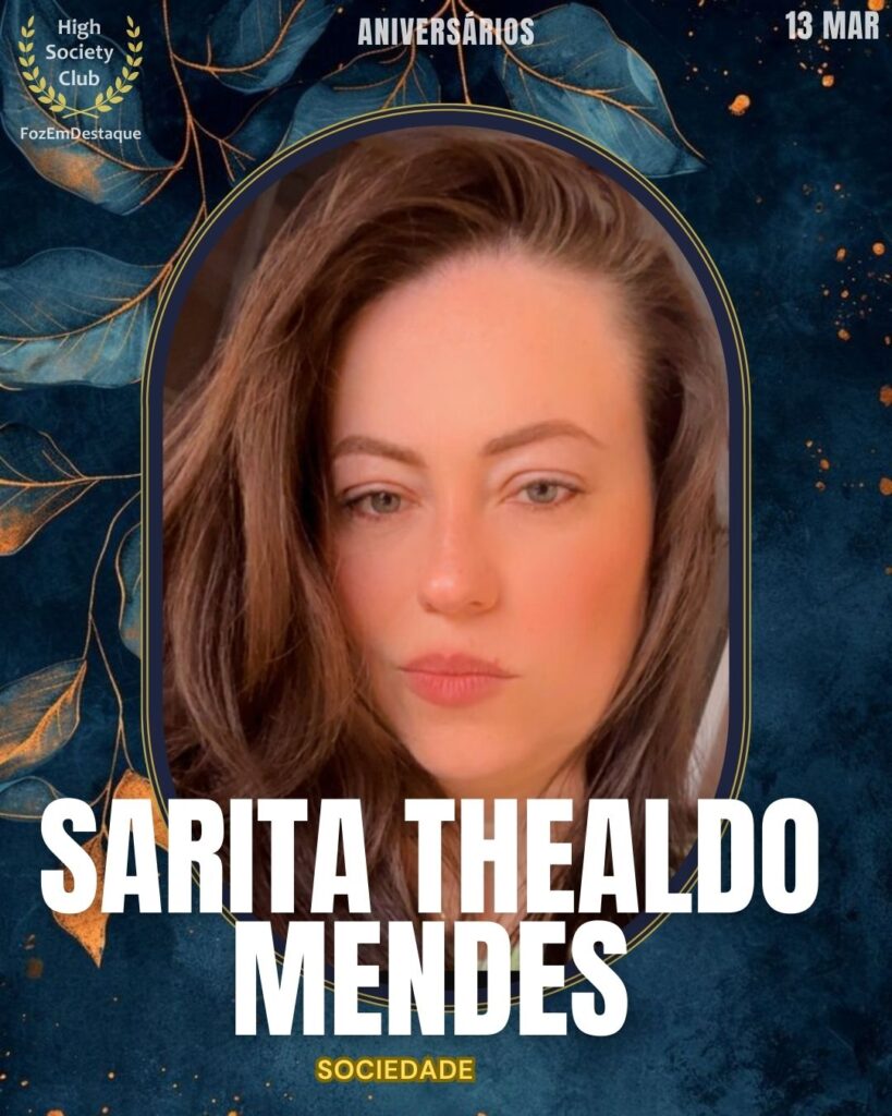 Elegante e sempre cordial, Sarita Thealdo Mendes é uma presença iluminada em nossa sociedade. Celebrar seu aniversário é festejar a amizade e a alegria de viver que ela emana por onde passa. Que seu dia seja tão especial quanto a sua presença em nossos eventos sociais, repleto de amor e saúde.