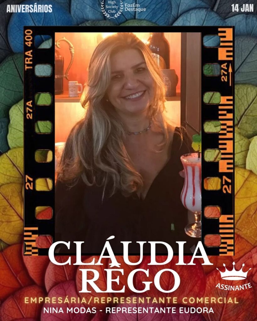 Empresária dinâmica e representante comercial de sucesso, Cláudia Rêgo é um nome de destaque no cenário da moda e beleza regional. Comanda a Nina Modas e representa a marca Eudora com vigor, demonstrando um talento nato para os negócios e para o relacionamento com o público. Membro do HighSocietyClub