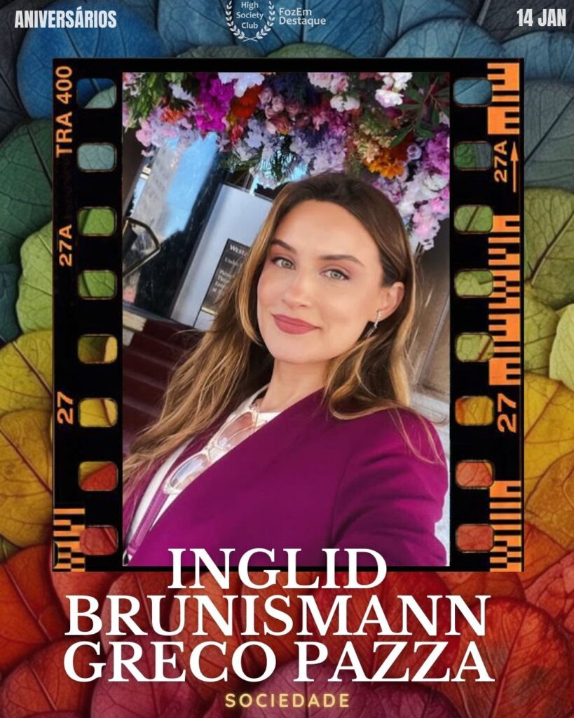 Figura querida em nossa sociedade, Inglid Brunismann Greco Pazza celebra seu aniversário cercada de carinho. Sua presença elegante em eventos sociais é marca registrada, sendo admirada pela gentileza e pelo espírito acolhedor que dedica aos amigos e familiares.