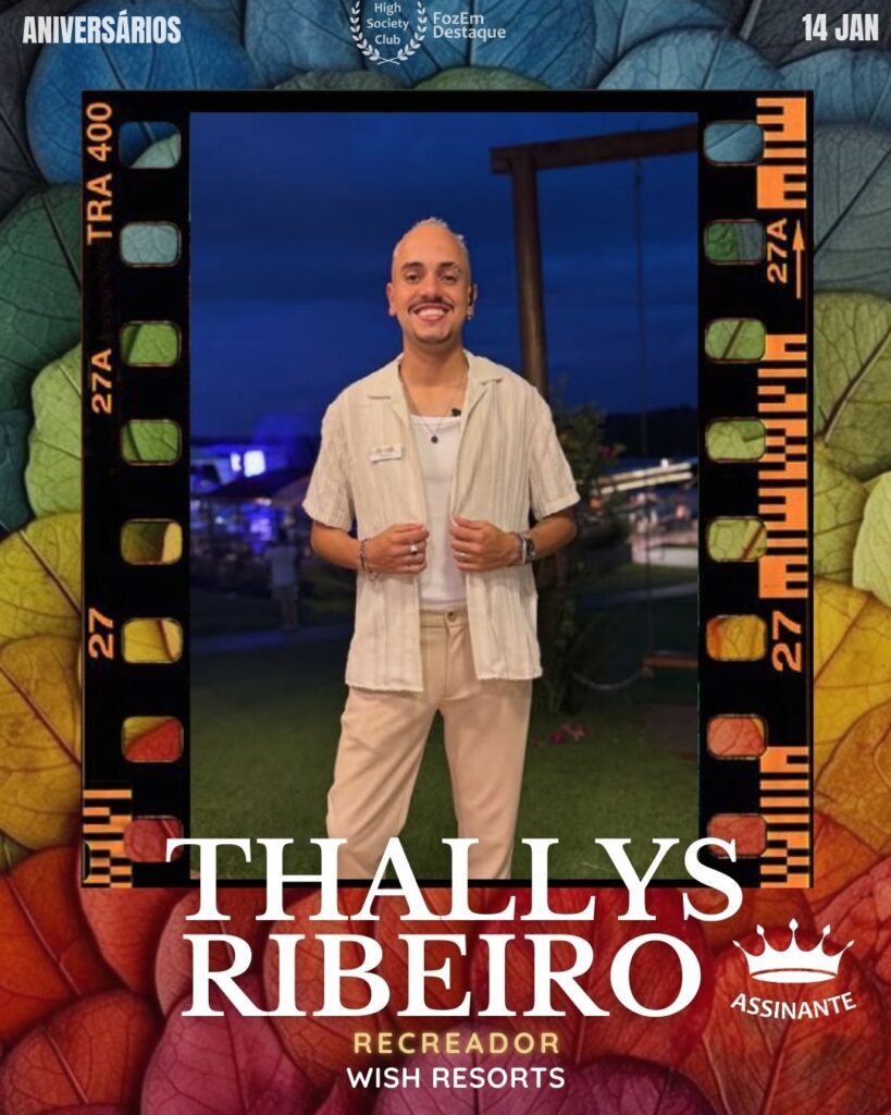 Dinamismo e alegria definem Thallys Ribeiro. Atuando com maestria no Wish Resorts, ele leva diversão e bem-estar como recreador, destacando-se pela energia contagiante e pelo profissionalismo que dedica a cada atividade proposta. Membro do HighSocietyClub