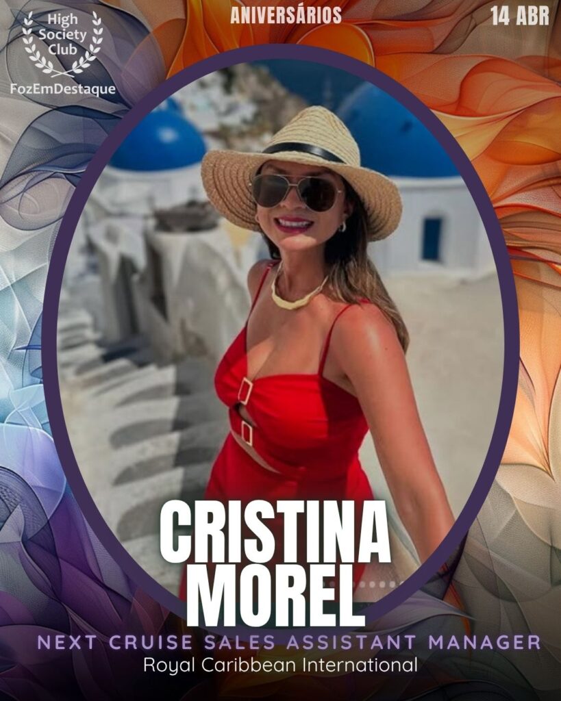 Executiva experiente no setor de turismo de luxo, Cristina atua como Next Cruise Sales Assistant Manager na prestigiada Royal Caribbean International. Sua carreira internacional reflete a competência técnica e o dinamismo de quem domina o mercado global de cruzeiros. Membro do HighSocietyClub.