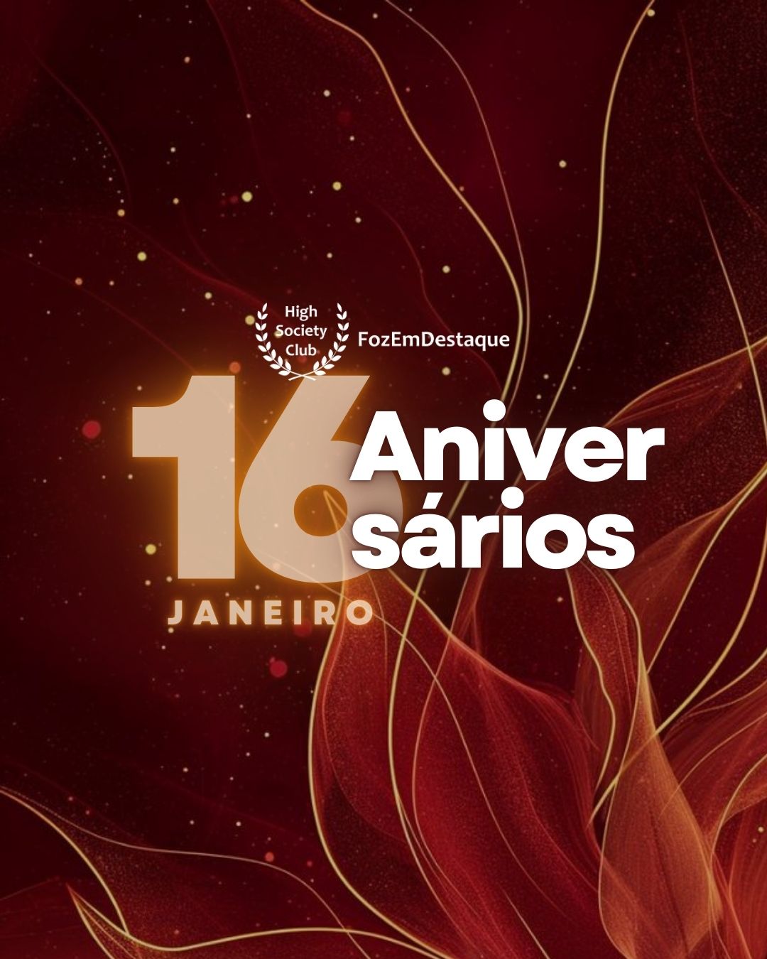 Neste 16 de janeiro, o Portal Foz em Destaque se veste de gala para homenagear aqueles que sopram velinhas. São profissionais liberais, comunicadores, artistas e visionários que movem nossa engrenagem social com elegância e competência. Desejamos que este novo ano pessoal seja repleto de saúde, prosperidade e que a luz que cada um carrega continue a iluminar os caminhos da nossa Terra das Cataratas. Parabéns aos aniversariantes!