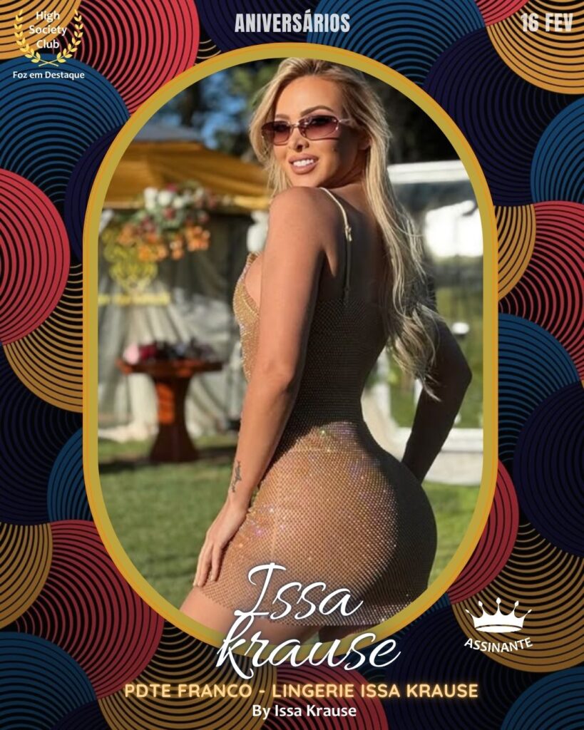 Nome forte na moda íntima e lingerie em Presidente Franco, Issa Krause combina sofisticação e empreendedorismo com suas marcas autorais. É uma presença marcante que exala estilo e determinação. Membro honroso do HighSocietyClub. Instagram: https://www.instagram.com/issa_krause/ | https://www.instagram.com/byissakrause/ | https://www.instagram.com/ling.erieissakrause/