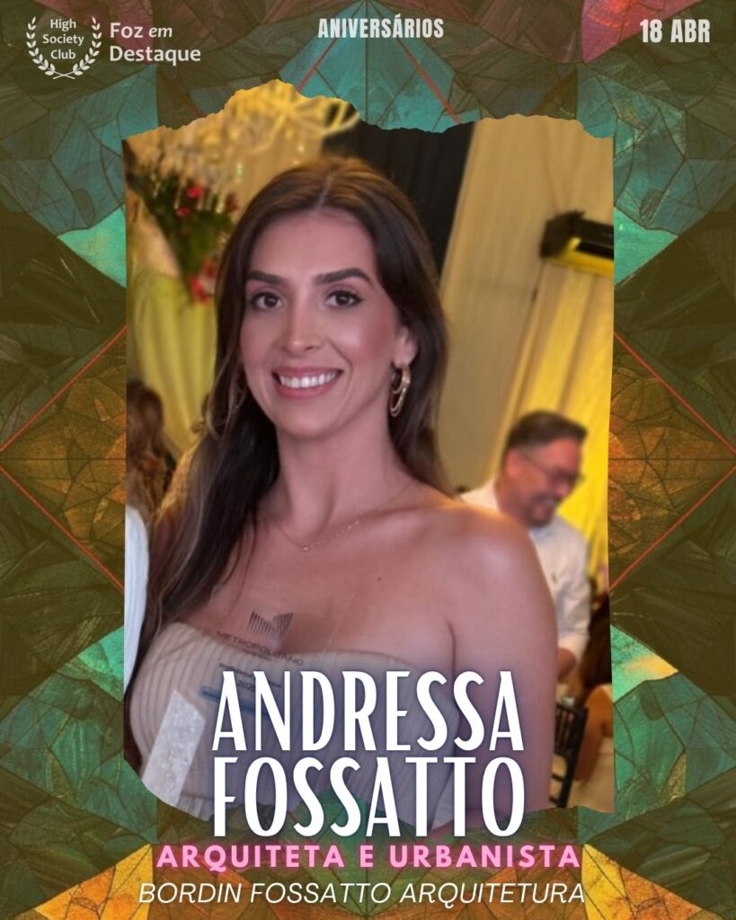 Arquiteta e Urbanista à frente da Bordin Fossatto Arquitetura, Andressa assina projetos que unem sofisticação e técnica. Membro do HighSocietyClub, ela é referência em transformar espaços em experiências sensoriais.