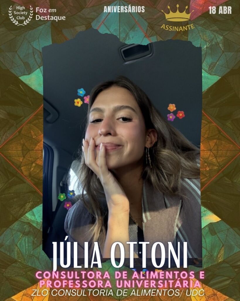 Consultora de Alimentos, Professora Universitária na UDC e força motriz na Zlo Consultoria, Júlia é Membro do HighSocietyClub. Sua atuação acadêmica e técnica é referência absoluta em segurança alimentar.