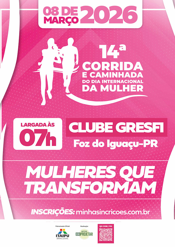A 14ª Corrida e Caminhada do Dia Internacional da Mulher e a Feira da Mulher são convites para que toda a comunidade de Foz do Iguaçu celebre as conquistas femininas. Seja correndo, caminhando ou prestigiando as empreendedoras locais, a sua presença fortalece a voz das mulheres na fronteira.