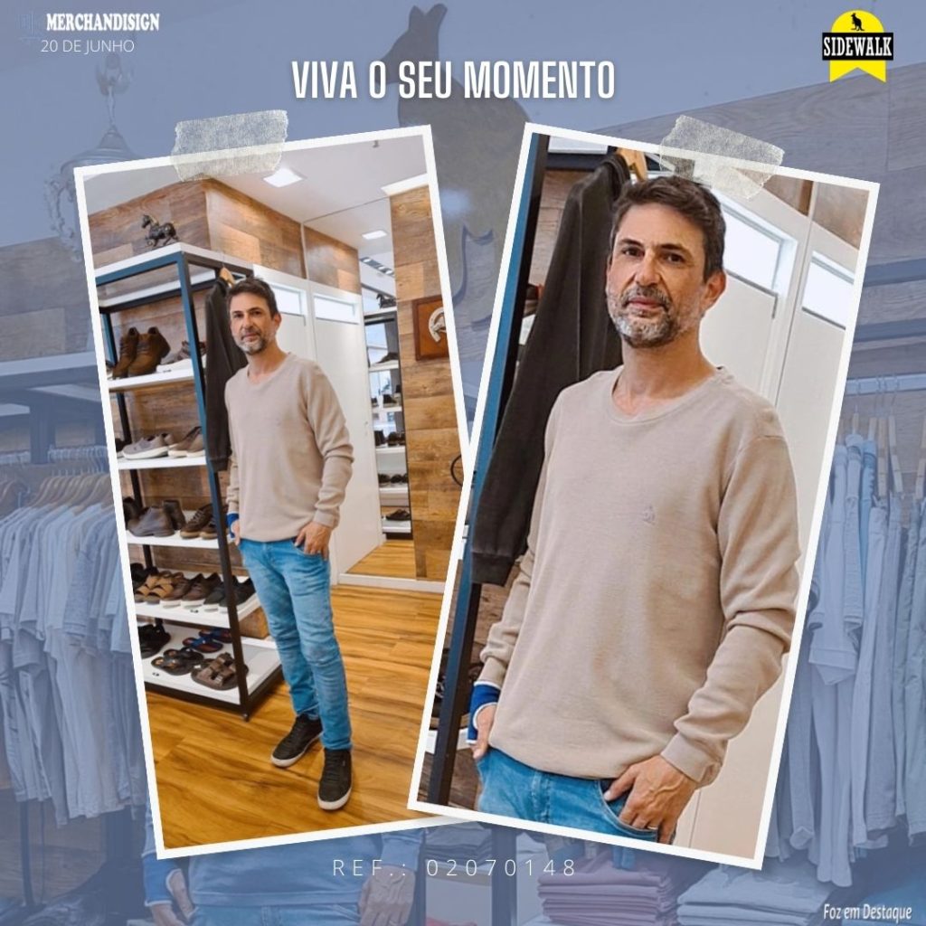 O empresário CLÁUDIO FAVA apresentando as muitas novidades da coleção Inverno 2022 da Sidewalk Foz.