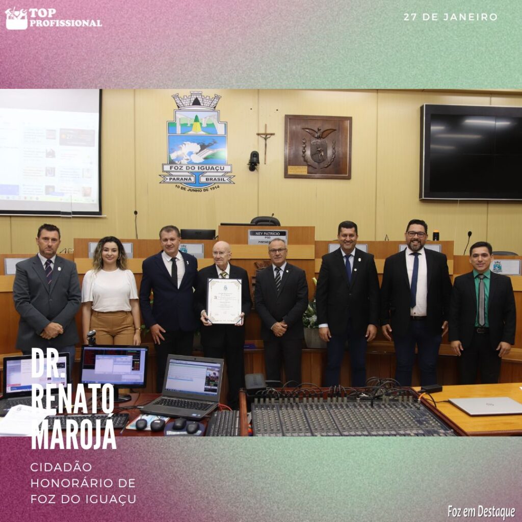 Ele integrará o rol de cidadãos honorários de Foz com muito mérito”, finalizou o na época presidente da Casa, vereador Ney Patrício (PSD).