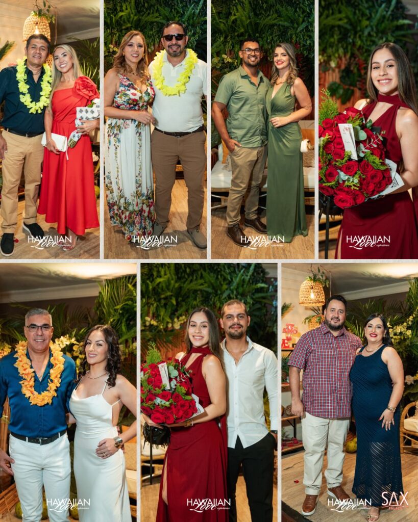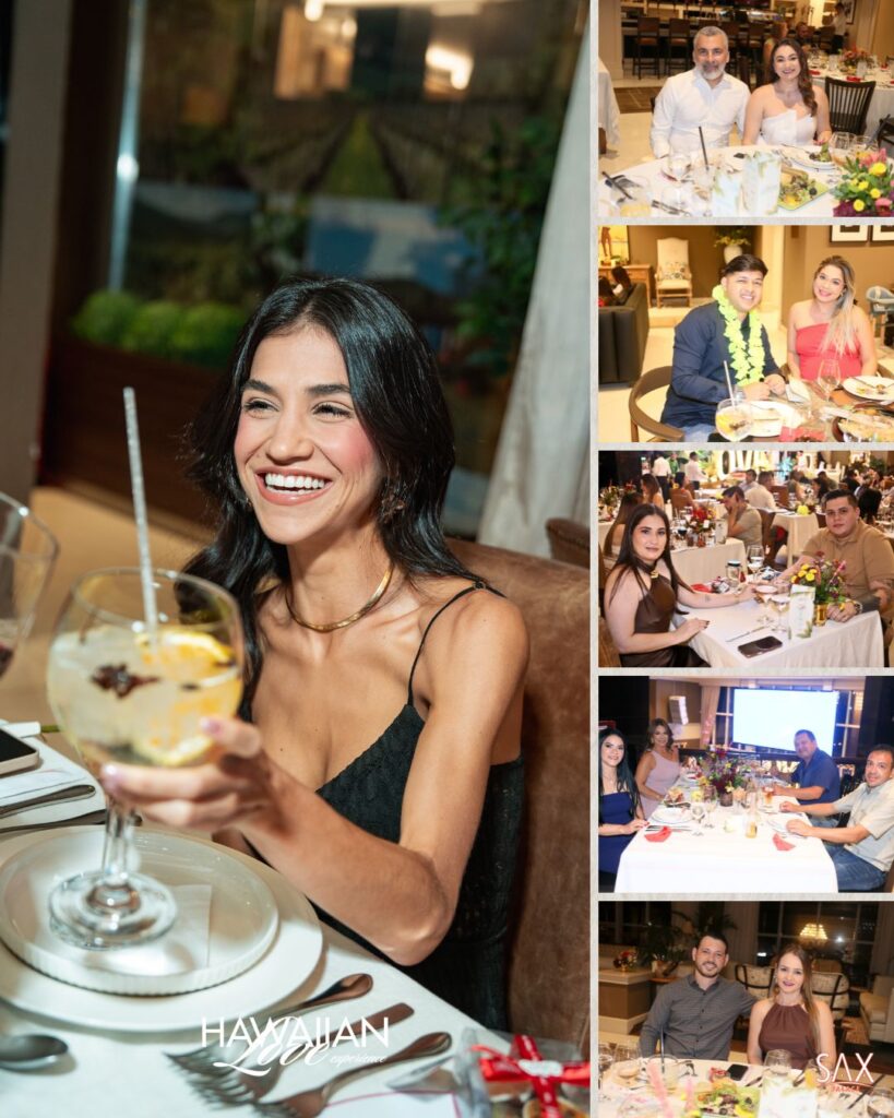 Ademã! A Hawaiian Love Experience redefiniu o padrão de romance na nossa fronteira. Quem escolheu o Sax Palace na última sexta-feira vivenciou uma noite de pura exclusividade. Tudo começou com a subida pelos elevadores privativos, onde os convidados deixavam o mundo comum para trás. Ao chegarem ao topo do conglomerado, os casais foram recebidos com a elegância típica da equipe local. Contudo, foi a atmosfera que roubou a cena. A decoração temática, assinada pela Alejandria Arte Floral, transportou a todos para um cenário paradisíaco, cumprindo a promessa de viver a magia sem sair de Ciudad del Este.
