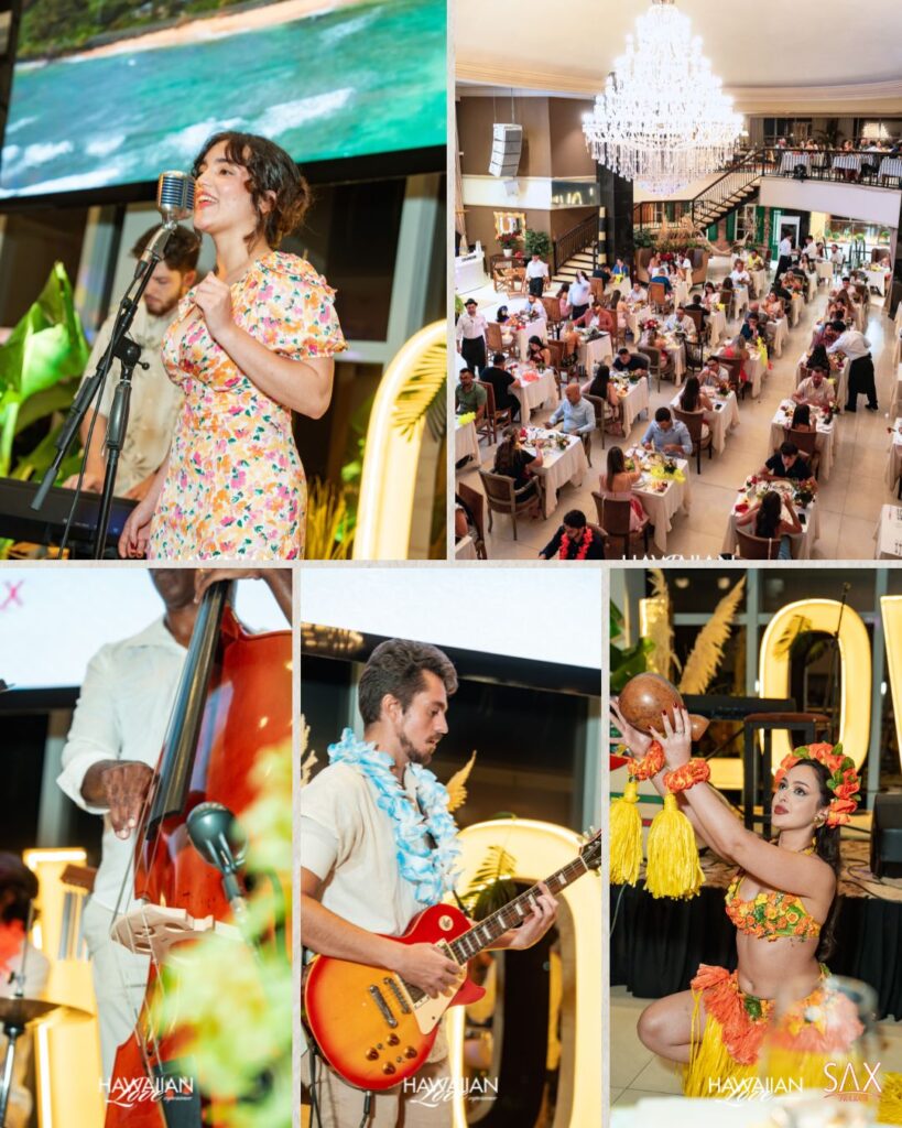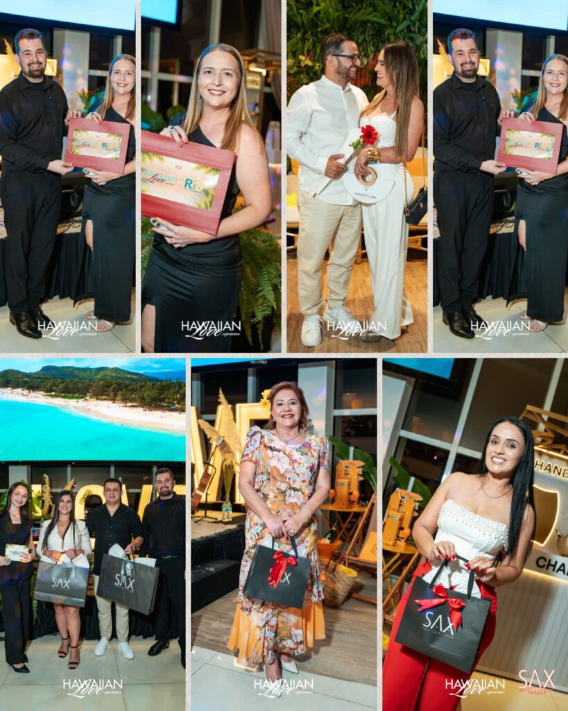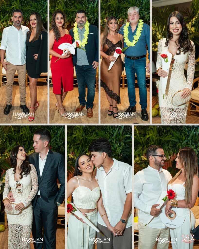 Não se faz um evento desse nível sozinho, swan. O sucesso da noite se deve a um “dream team” de parceiros. A gastronomia impecável, por exemplo, foi harmonizada pela Perpetuo Wines , enquanto o frescor tropical ficou por conta da Mister Coco Brasil. Além disso, a Velaroma garantiu que a Hawaiian Love Experience tivesse um perfume inesquecível. Marcas de prestígio como Luxury Life PY, Espacio Gourmet, Petit Café e Radesa também chancelaram a noite com seu lifestyle. Por fim, a hospitalidade do Rio Hotel by Bourbon CDE completou esse time de peso.