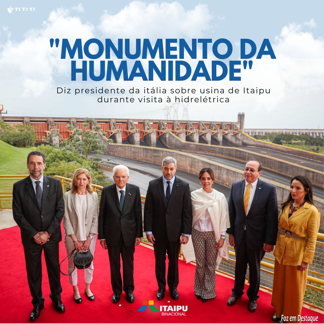 “Monumento da Humanidade”, diz presidente da Itália sobre usina de Itaipu durante sua visita inédita à hidrelétrica.