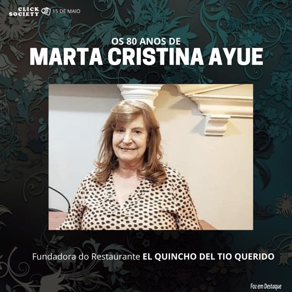 Também a história de Senhora MARTA CRISTINA AYUE mostra a força do empresariado trinacional, sempre disposto a tudo e confiante na nossa região trinacional, e junto com a comemoração de seus 80 anos,  trabalhando e cuidando dos negócios no restaurante, comemoramos também os 40 anos de trabalho pelo progresso de nossa região.