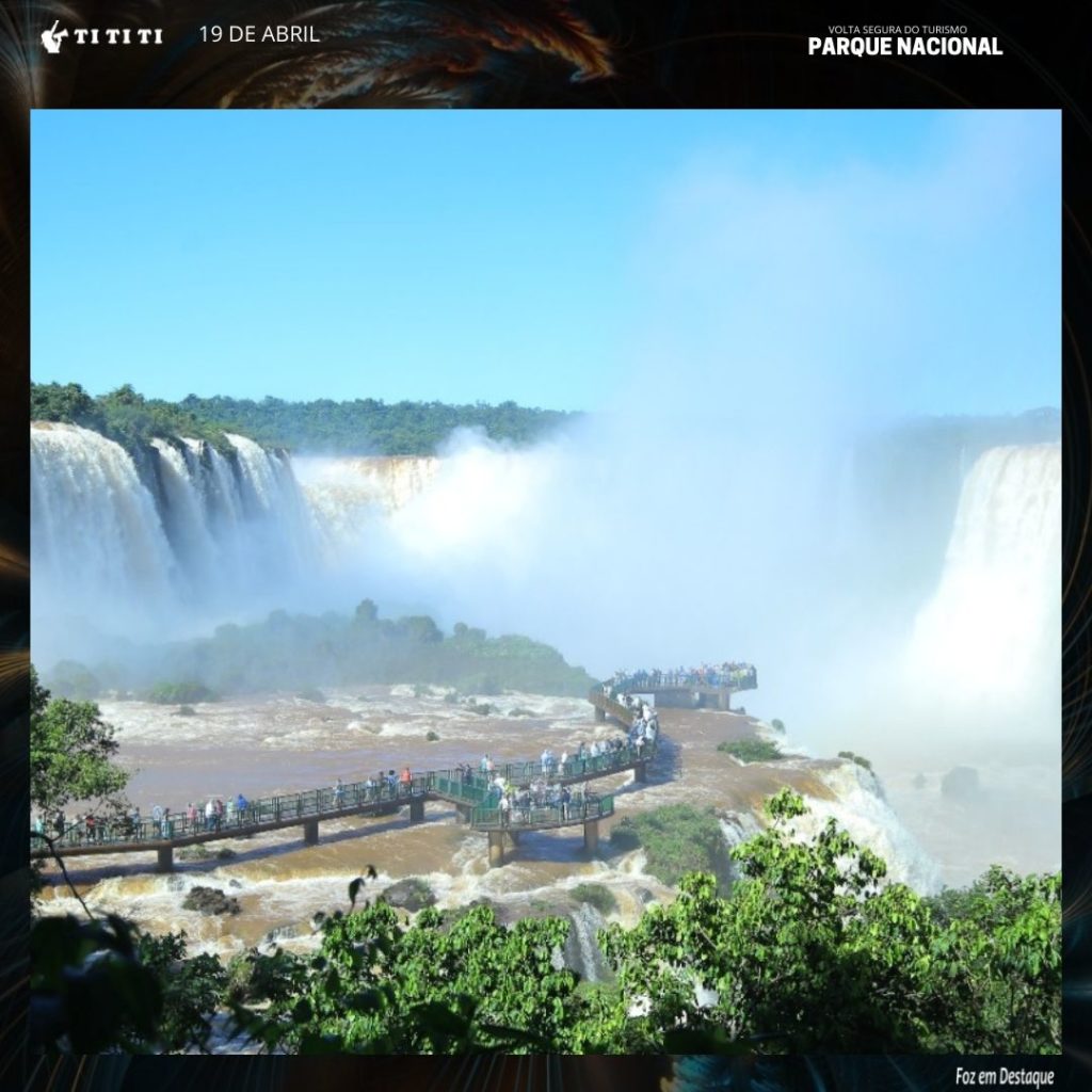 O Parque Nacional do Iguaçu, que abriga as Cataratas do Iguaçu, recebeu 23.106 visitantes nos três dias do feriado prolongado de Páscoa (de 15 a 17 de abril). O movimento foi 600% maior que no mesmo período do ano passado, quando apenas 3.019 pessoas passaram pela unidade de conservação, por causa das restrições da pandemia..