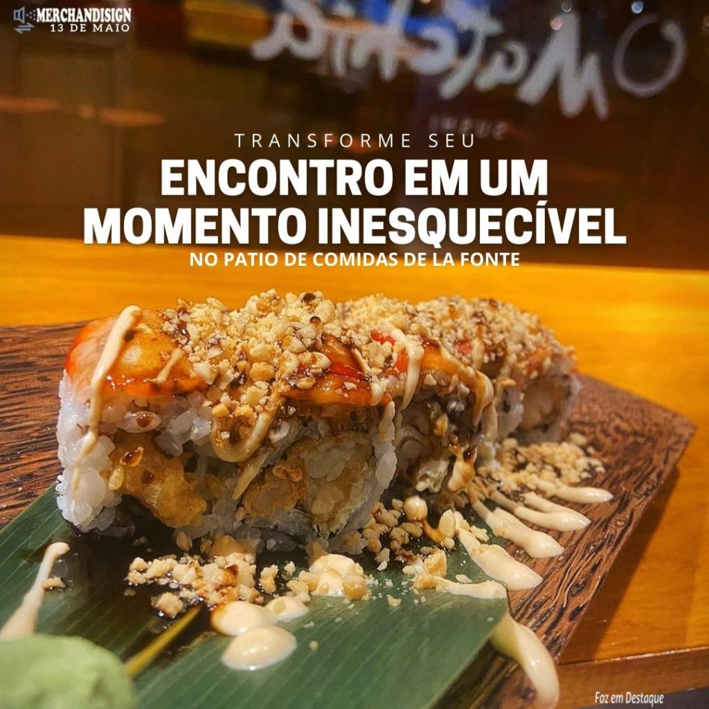 Só no Patio de Comidas De la Fonte você desfruta de um amplo cardápio repleto de opções de Gastronomia Italiana, Sushi, Wok, Pizzaria, Hamburgueria e uma Carta com ótimos vinhos!