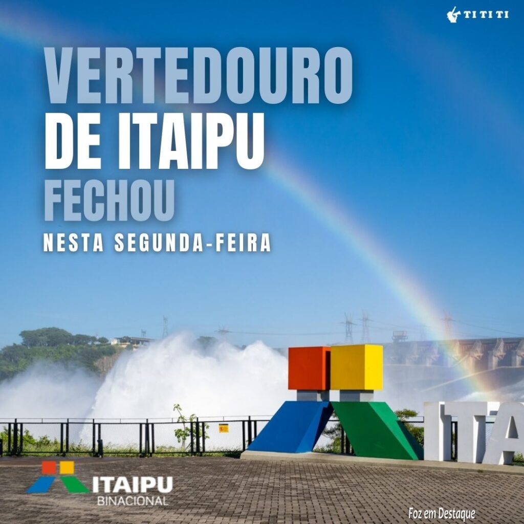 O vertedouro de Itaipu fechou às 11h50 desta segunda-feira (3). Pois as comportas estavam abertas desde 14 de janeiro, totalizando 80 dias de operação ininterruptos, fato não observado desde maio de 2011. Em suma, o vertimento máximo foi e 12.361 metros cúbicos de água por segundo (m³/s), no dia 19 de fevereiro, quando duas calhas estavam abertas. O vertedouro deve voltar a operar eventualmente em horários de baixa produção, dependendo da afluência e da demanda por energia.